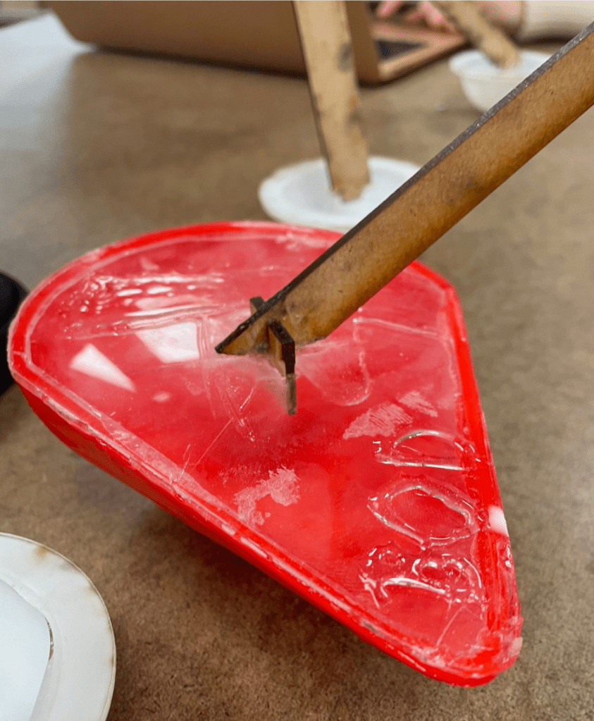 In order to create a protective shell but satisfy the need of a light weight solution and the desire to still have our electronics visible, we decided to try vacuum forming. We created a half bean shape using laser cut MDF and a round 3D printed top piece and then created a shell of the bean with the vacuum former.
