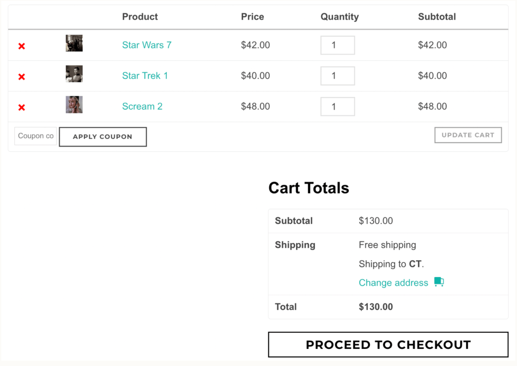 An example cart at checkout