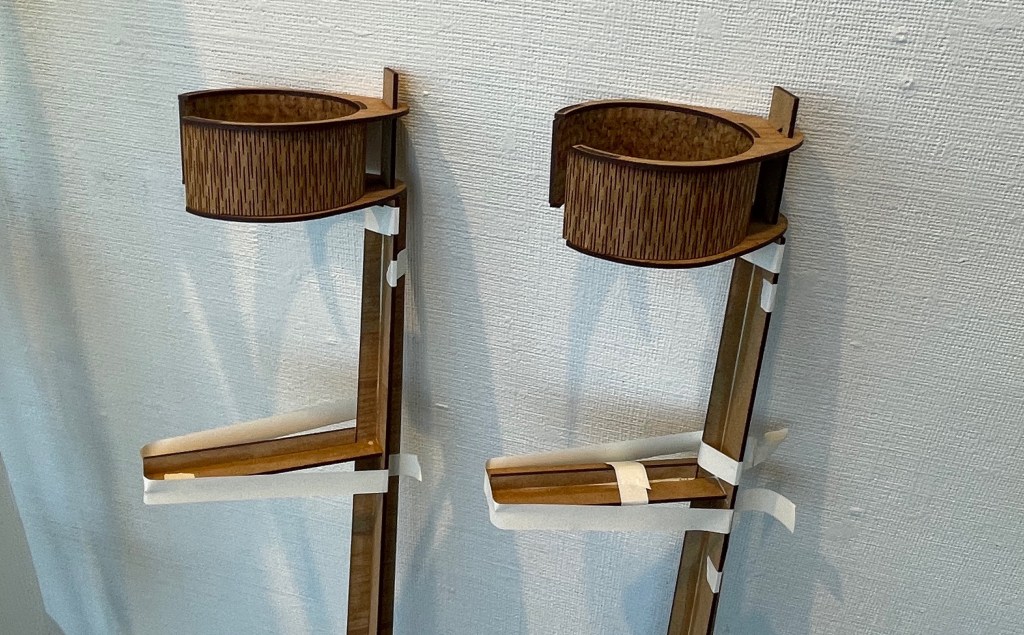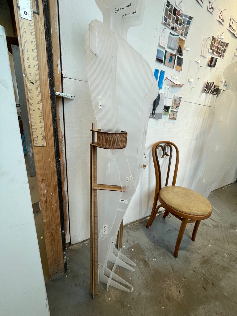 I knew that I wanted to have physical representations of each person (me, Emma, Sarah) in the exhibition so that it would be very clear that this work was talking about bodies and their interactions with adaptive tools. However, in order to honor the wishes of some of co-designers, images of each person could not be used. In some ways, this worked out well because it made me search for more abstract versions of each person. In creating these physical body maps in a single, neutral material I hoped that the initial person would still be represented, but that these people could encompass a much larger demographic at the same time. Design for one, expand to many.